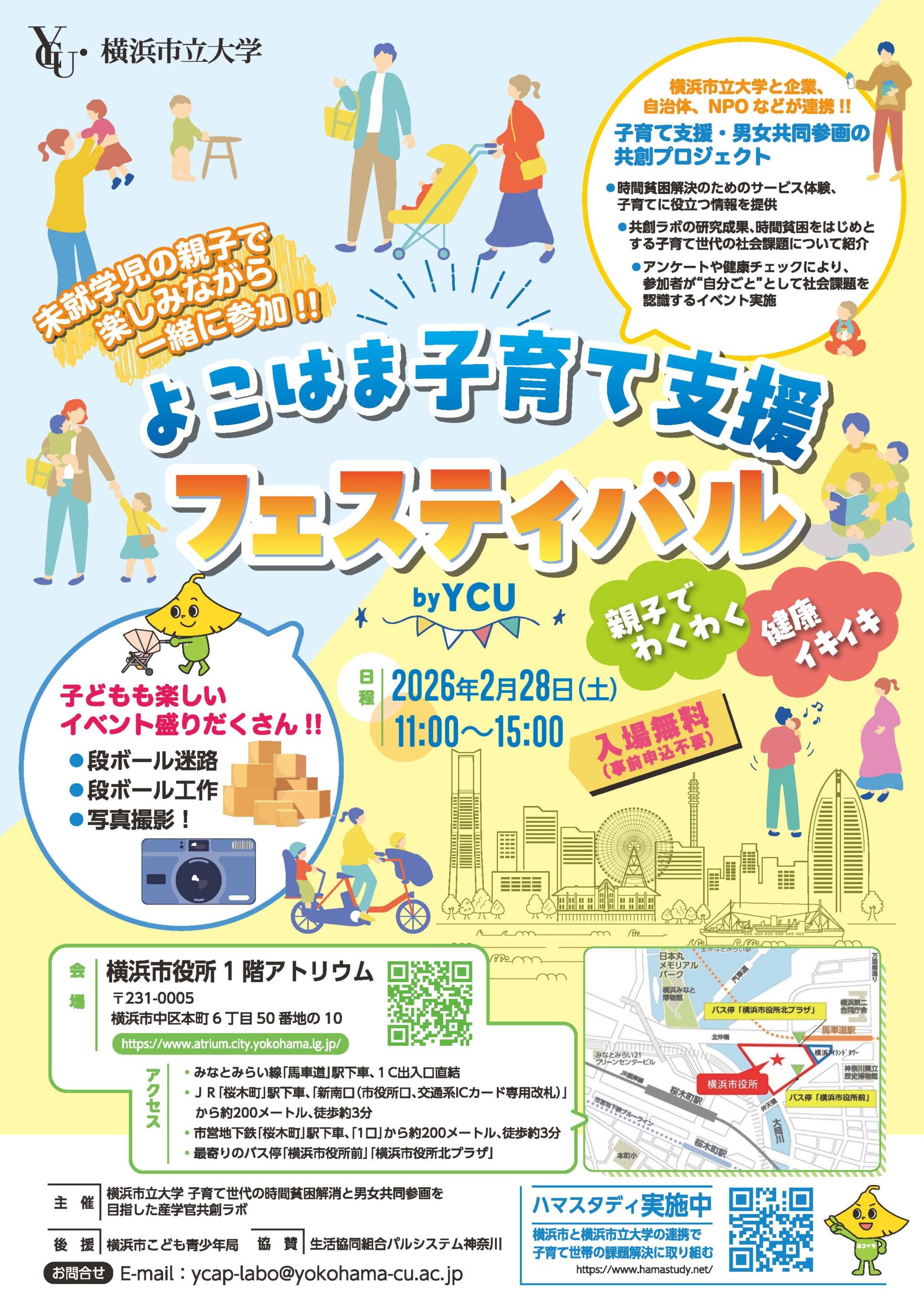 親子でわくわく!健康イキイキ! よこはま子育て支援フェスティバルが開催されます! パパ・ママに役立つ情報や体験、子供も楽しめるコンテンツも盛り沢山! 大人も子供も楽しく参加できる入場無料イベントです
