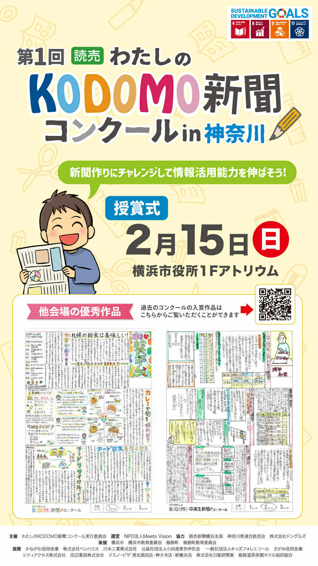 表彰式は、2月15日(日)横浜市役所アトリウムで開催します。どなたでも見学可能です。当日は、入賞した優秀な作品もご覧いただけます。